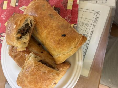 今日はお昼ご飯作りながらインしてました。このあと仕事なのでまた夜やります!今日の昼ごはんは、ビーフパイです!中身は玉ねぎと牛バラです。あ、牛バラは脂っこいので、油抜きをしてからにしました!とてもおいしかったです!