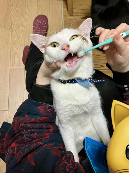 フィガロ、毎回こんな顔で全力拒否するんだけど…… なんだかんだ言いながら結局は歯みがきさせてくれます笑 猫も歯磨きしないと歯周病になっちゃうし、 放っておくと最悪全身麻酔で抜歯なんてこともあるからね。 イヤがられても、ここは愛の力で乗り切るしかない…! この「あうわうわう(やんだやんだ)」って文句言いながら 頑張ってくれる姿が、もう愛しくてたまらない。 やっぱり健康のためには毎日のケア、大事☆*:.。. o(≧▽≦)o .。.:*☆
